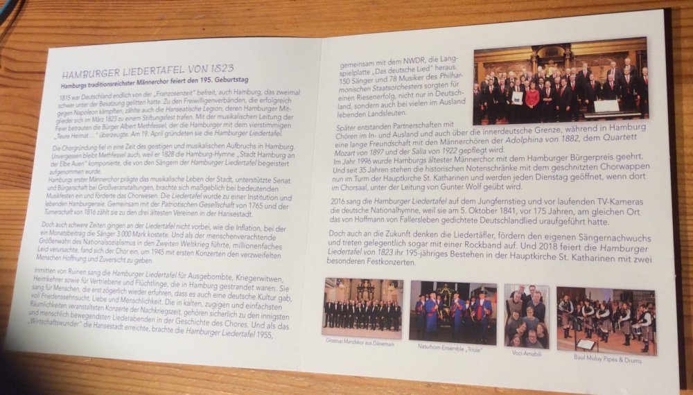 29 april 2018 - koncert med liedertafel koret og andre- Liedertafel korets historie